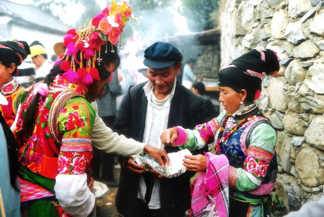 与氐羌族系相关的民族有纳西族、彝族、哈尼族、傈傈族、普米族、白族等。图为20世纪90年代的彝族人民在过节
