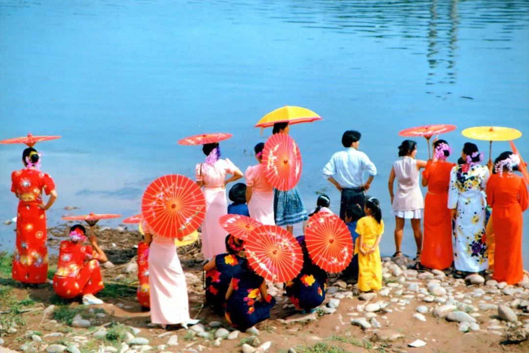20世纪90年代,傣族人民在河边观看龙舟赛