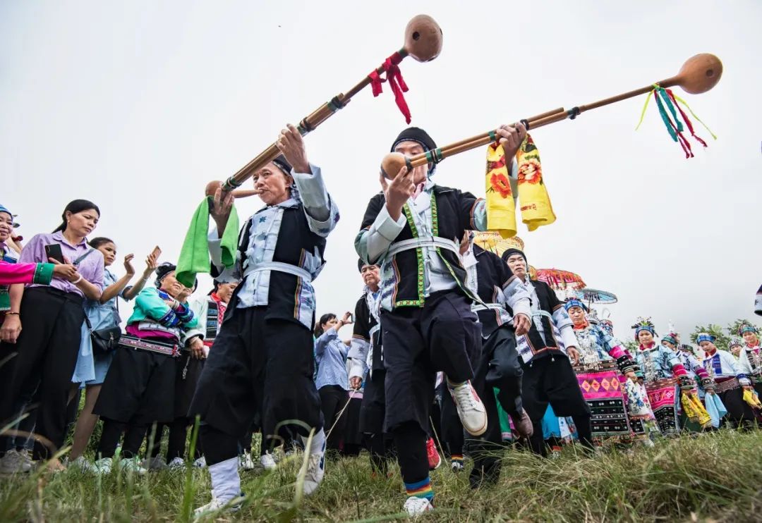 佤族群众通过木鼓节与祖先对话,同样敲响木鼓的还有基诺族的特懋克节,人们在鼓声中跳起大鼓舞、竹竿舞,纪念铁器的创制。