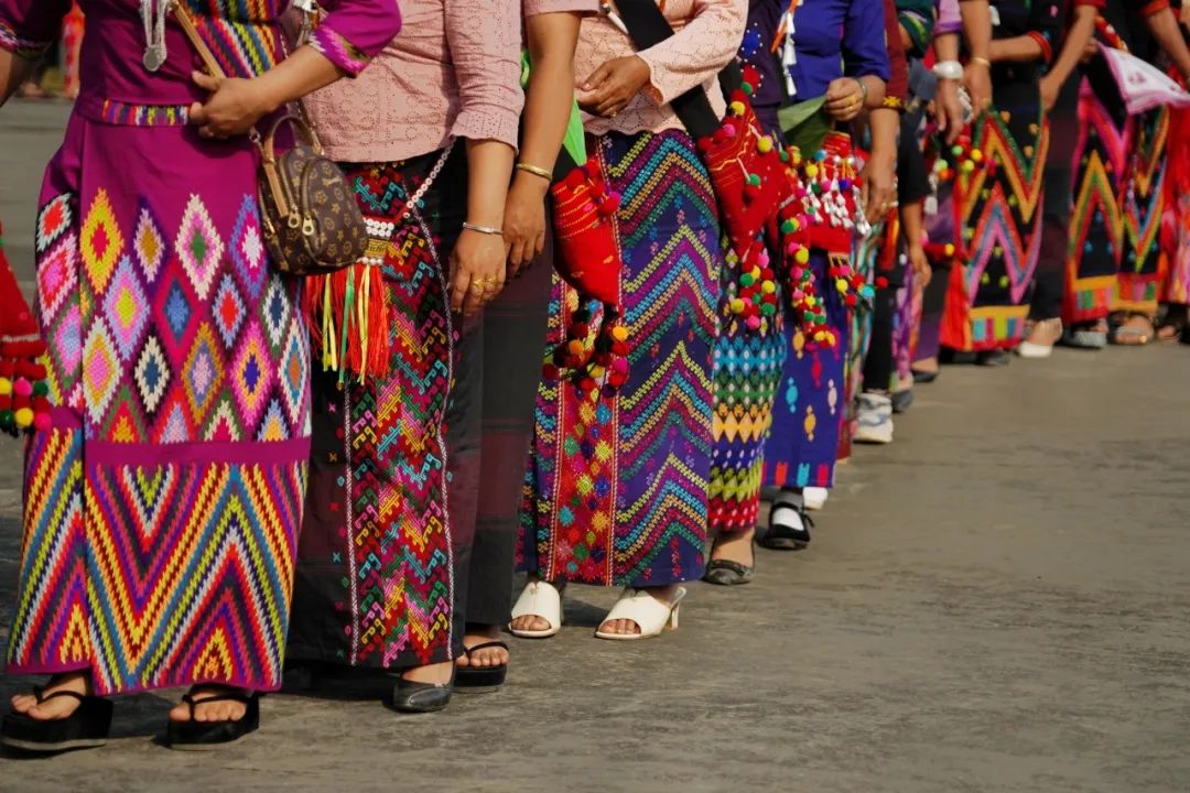 “目瑙纵歌”节人们所着的鲜艳服饰