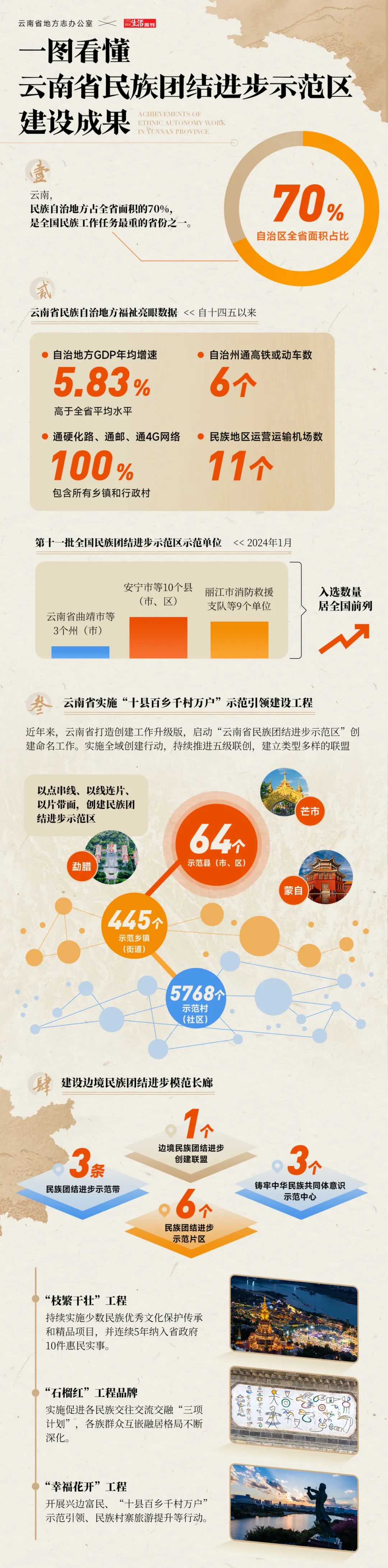 云南的民族自治地方占全省面积的70%,是全国民族工作任务最重的省份之一。在这片各民族交融互鉴的热土,云南正在以其独特的地理格局、深厚的历史积淀和生动的实践探索,成为展示中国特色解决民族问题正确道路所具有明显优越性的重要窗口,破解民族文化多样性与一体性密码的绝佳钥匙。
