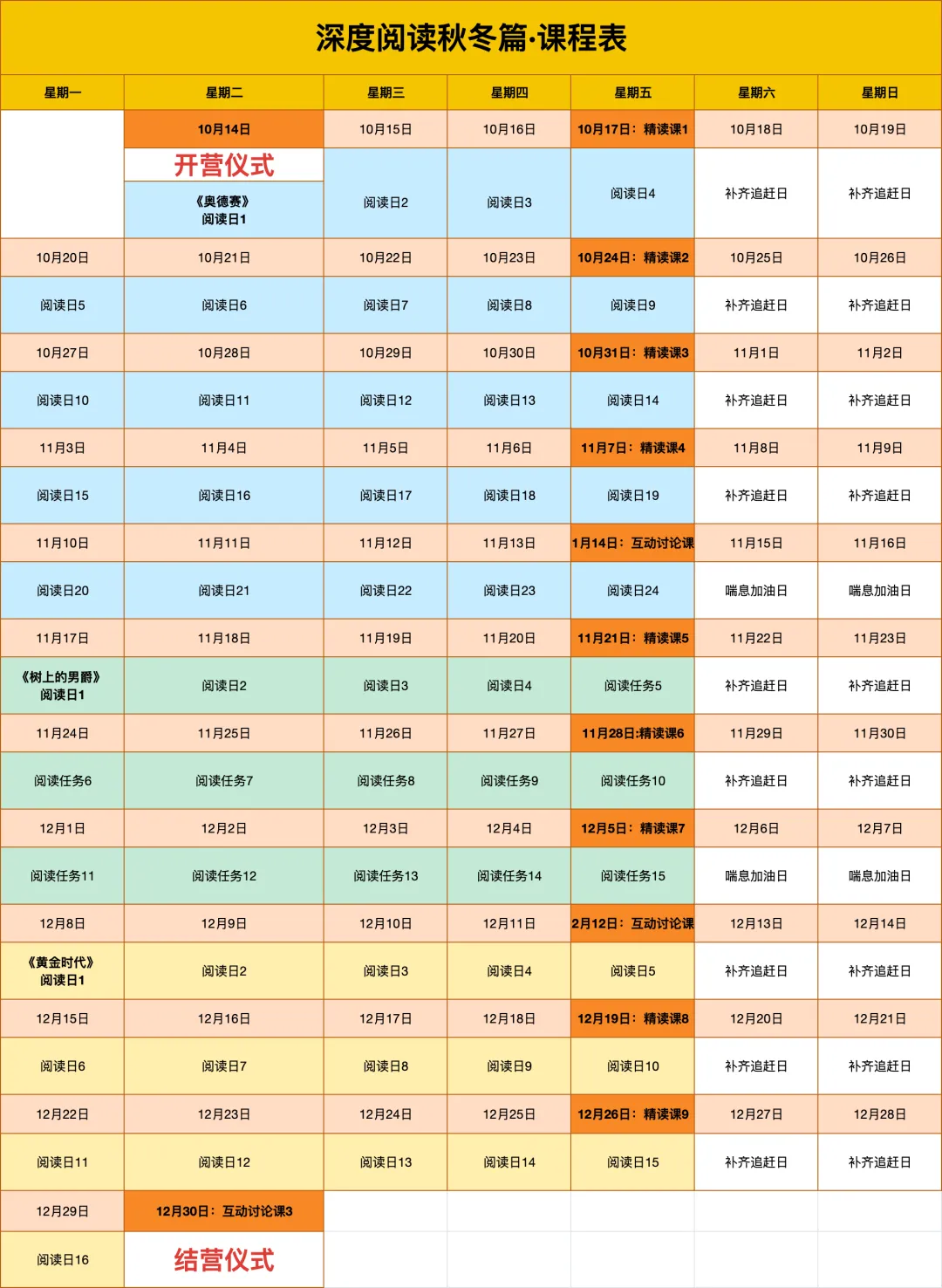 ● “张弛有度”的节奏安排:周末两天被设定为“补齐追赶日”,给予上班族充分的缓冲。书与书之间预留休息周,长假不设任务,宝妈宝爸友好。你可以在喘息中加油,轻松跟上进度,彻底消除跟不上的挫败感。
