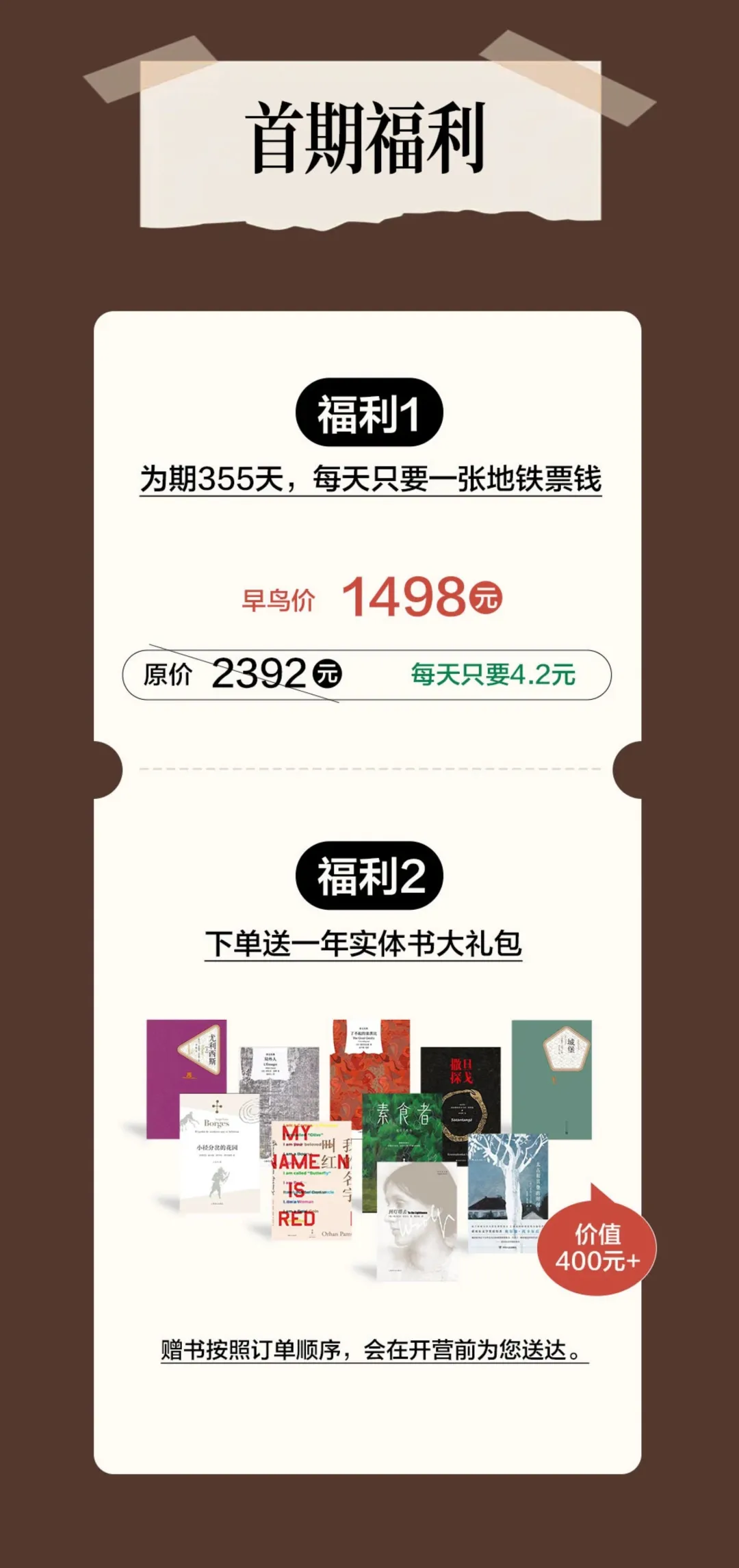 目前限时特惠价1498元 / 365天(原价:2392元),每天只需4.1元,相当于一张地铁票钱,即可获得一整年的阅读陪伴与深度成长。