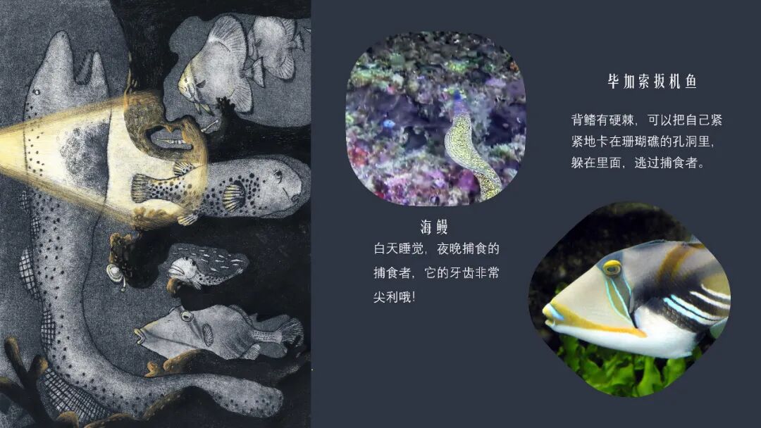 这本书由在国内外都屡获大奖的新锐插画师卢心远创作,她用细腻的干刻版画技法,搭配深蓝与灰黑的主色调,精准还原了夜海的深邃与静谧。艺术与科学的完美融合:不仅是科普书,更是一件“可翻阅的艺术品”。