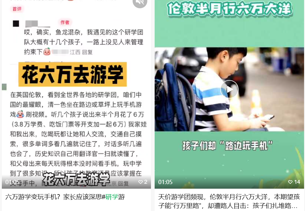 还有家长吐槽:花6万去伦敦“游学”,孩子却在路边玩手机。