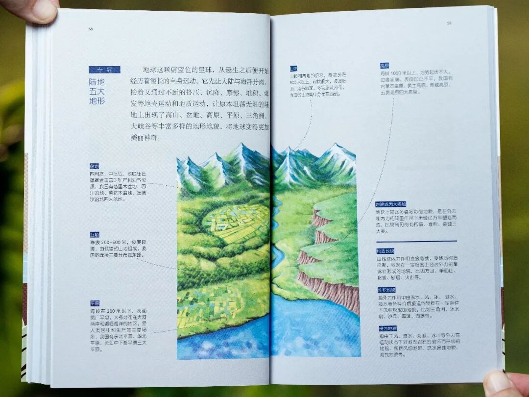 教孩子认识“陆地的五大地形”——平原、盆地、高原、山地、丘陵。
