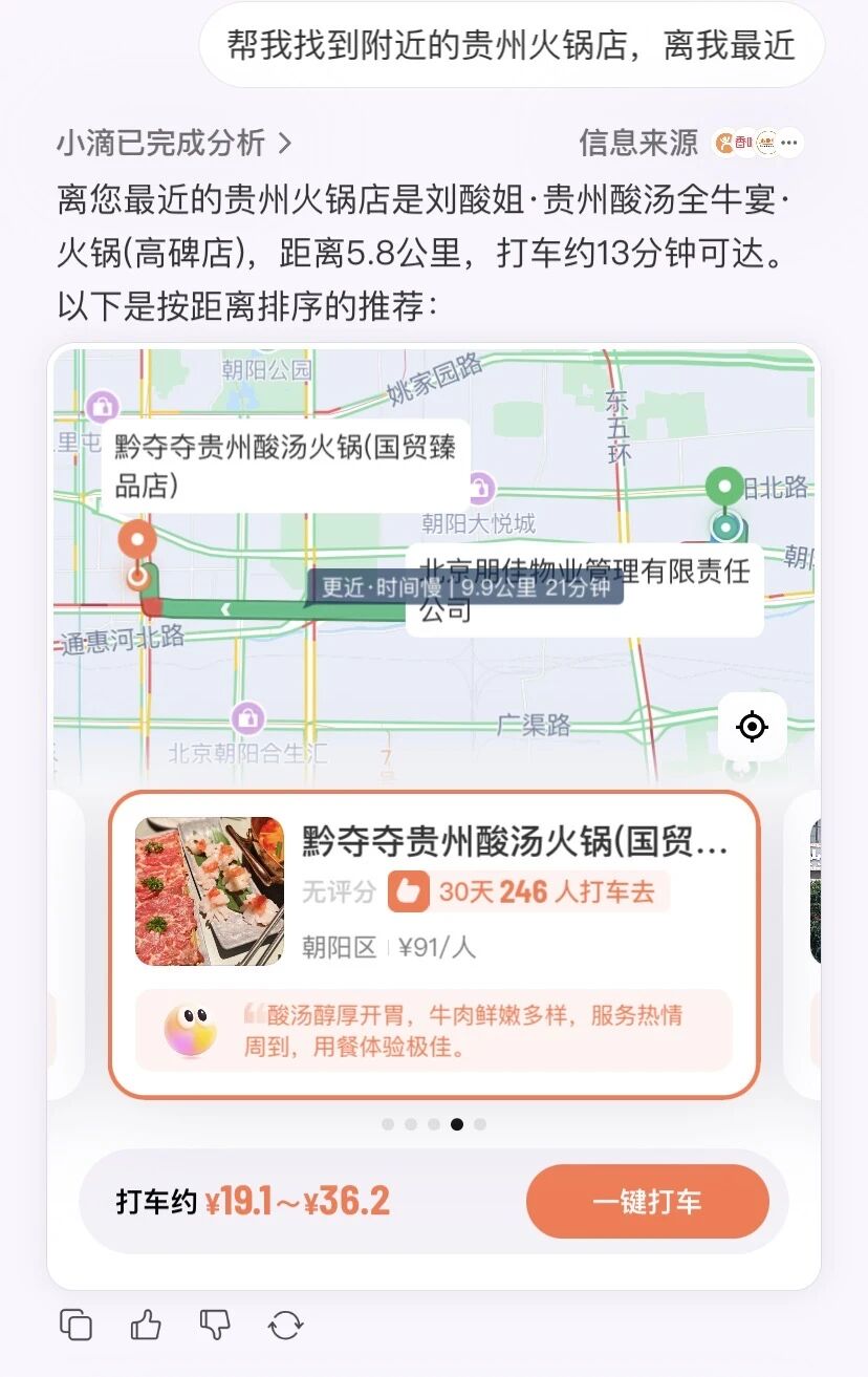 这个“用脚投票”的数据,可能比任何博主的推荐都真实。“看中了哪家还能用AI小滴直接打车过去,不用再切回打车App重新输入一遍地址。”