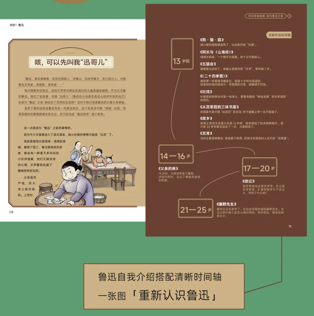 比如讲鲁迅,不聊深奥的文学理论,而是穿越到迅哥儿小时候,先去采访阿长、闰土等鲁迅文章里经常出现的人物,让孩子一开始就产生兴趣。再穿插许多闯关任务、思维导图。就像跟孩子做游戏一样,孩子自然而然就看进去了。
