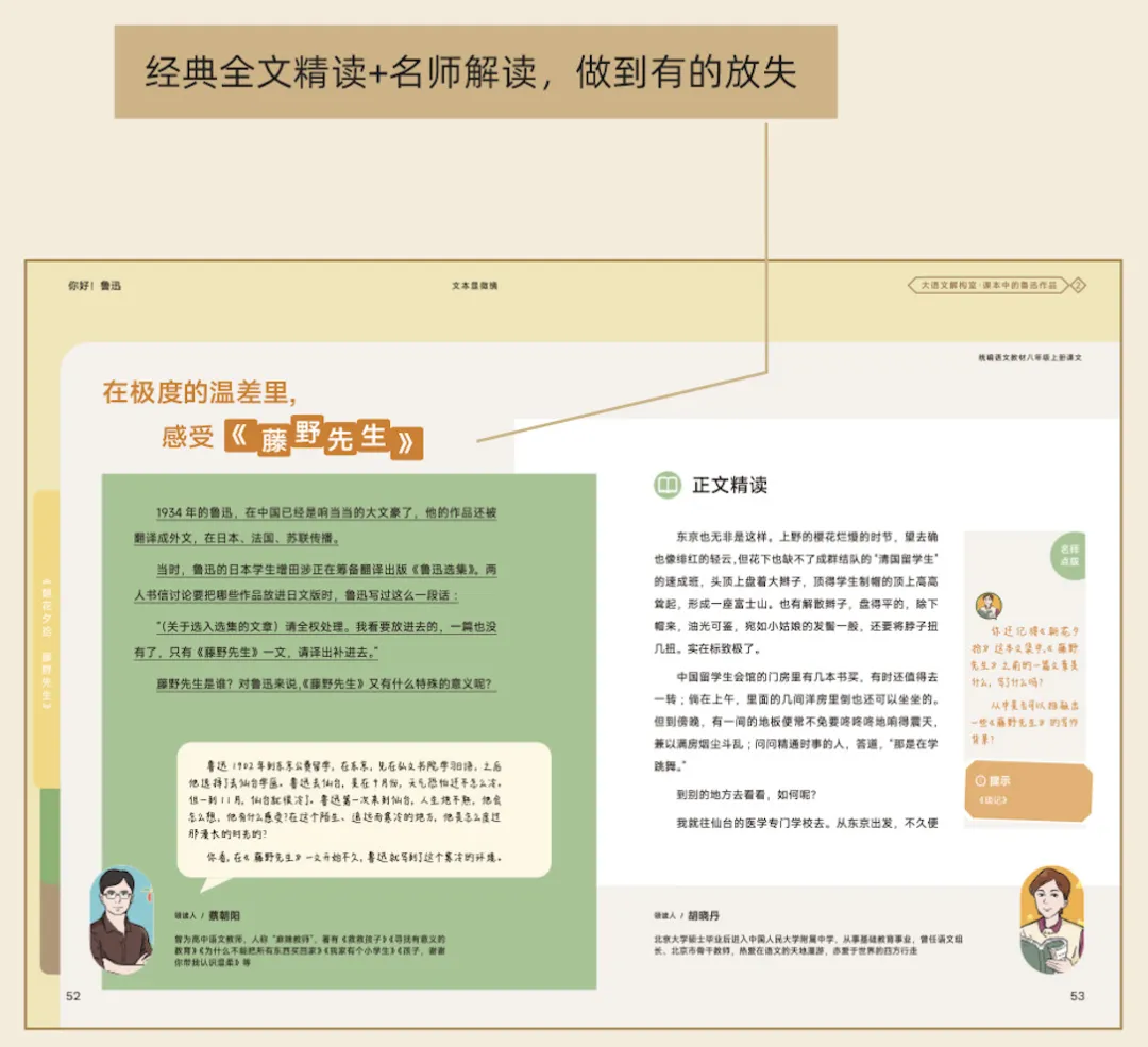 而且它最贴心的,就是和课本结合得特别紧密。作为家长,其实也怕孩子读课外书“没用”。但这套书,每一本都聚焦小学、初中统编教材里的高频知识点,比如鲁迅、李白、孔子、以史铁生为代表的大作家,都是课本里必学的,把课本里的知识点拓展延伸,孩子读课外书的同时,还能吃透课本内容,也能提前适应初中高年级的学习节奏。