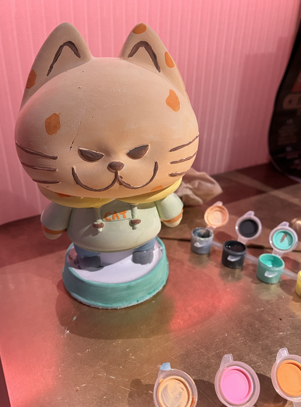 比如等位区的画风,堪称“东北洗浴中心”上海分店。免费涂色的石膏猫猫、小零食、茶水、花椒冰淇淋等轮番投喂。进店之后,店员会跟你聊天,问你刚才等位等了多久,有没有被黄牛烦到,聊着聊着,像认识了半天的朋友。