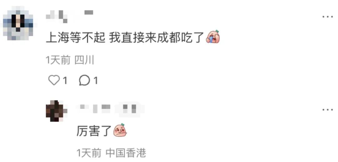 看到这种场面,最先坐不住的是成都人。“吃烤匠排十几个小时?真是疯了!幸亏我们成都满大街都是烤匠。”没想到这句话却成了反向种草——听说成都店多排队快,有的上海人直接买机票飞过去吃了。