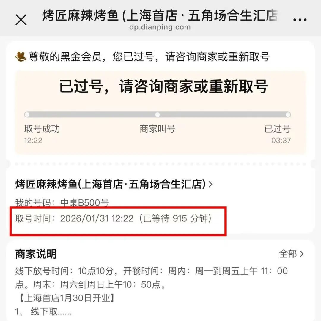 有人怀疑烤匠“是不是雇人排队”。不止一位上海顾客反映等位时间过长,有消费者10点前在合生汇门口排队进场,“10:30拿到号,19:40才进场,整整9小时”。黄牛猖獗更是火上浇油,有黄牛一天进账上千。