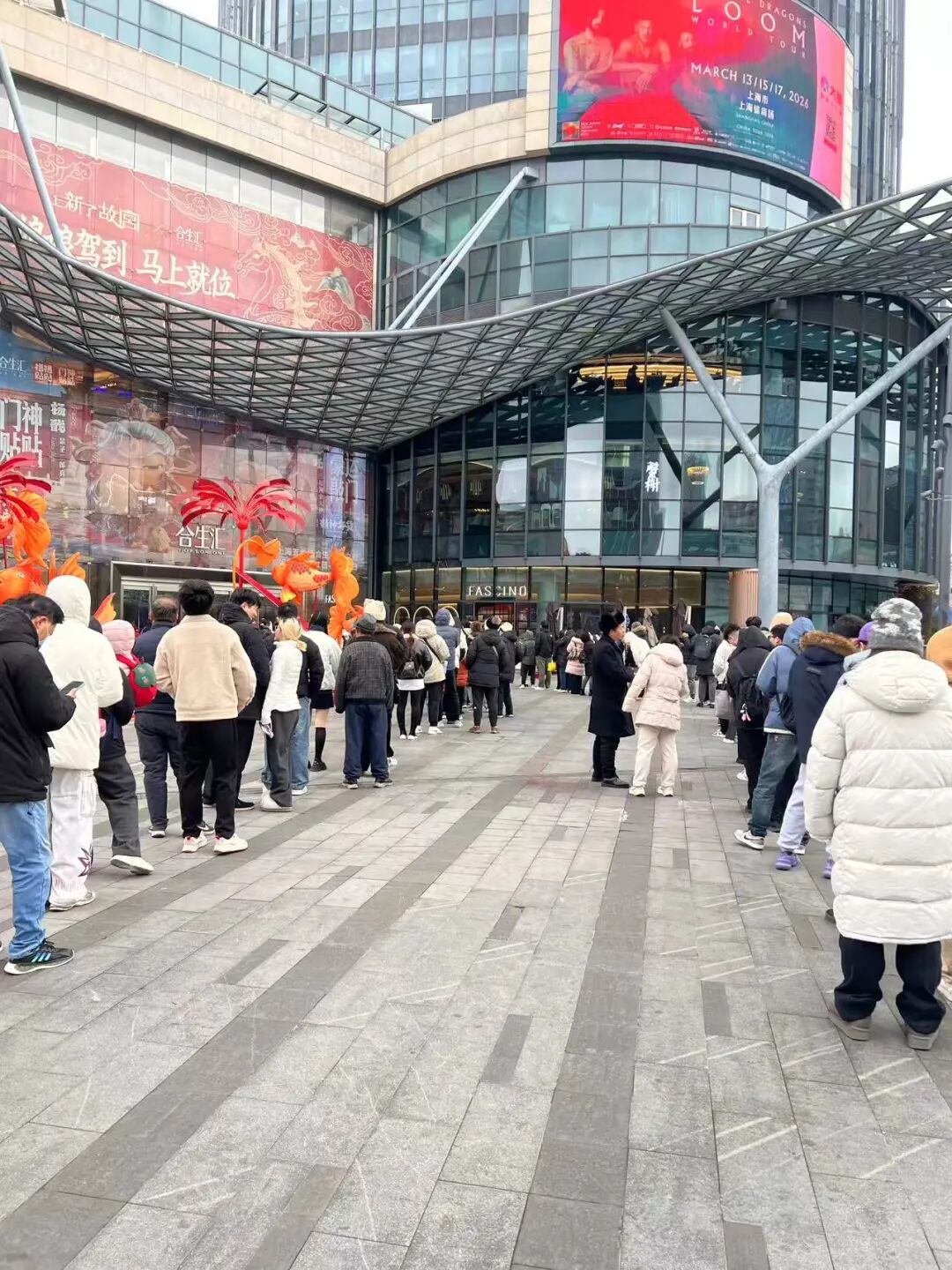 商场还没开门,许多人已经排起了烤匠