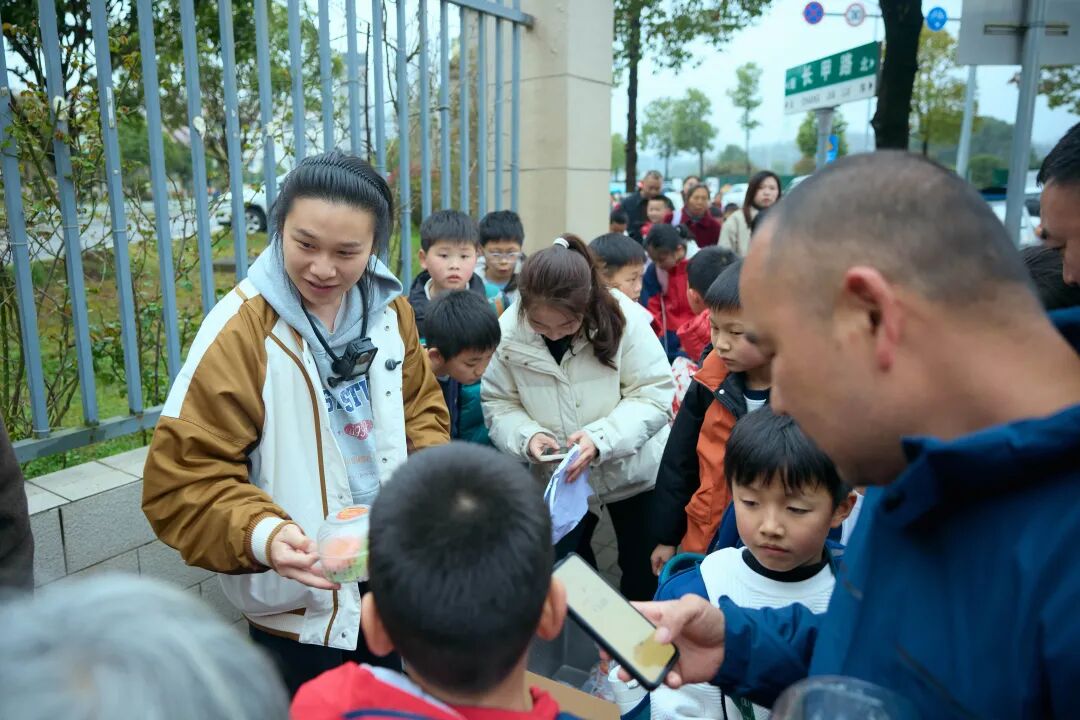 下午4点半,桂花小学的铃声一响,小学生一窝蜂地冲了出来。张子龙见状立马扔下摊位,抱起泡沫箱跑到了人流最拥挤的十字路口拐角处。他丝毫没犹豫,对着路过的学生熟练地叫卖起来:“火鸡面汉堡,三块钱一个,同学要不要尝一下,很好吃的!”这一吆喝,让不少小孩认了出来,“你是麻辣王子吗?”“可以跟我拍照吗?”“汉堡多少钱?”,也有成年人过来询问,“你们工厂还招人吗?”张子龙站的地方,很快被人们围成了密不透风的茧,无数伸出的小手在泡沫箱里抓来抓去。不到半小时,200多个粉色汉堡被一抢而空了。整条街都是一边走路、一边啃得满嘴流油的孩子。