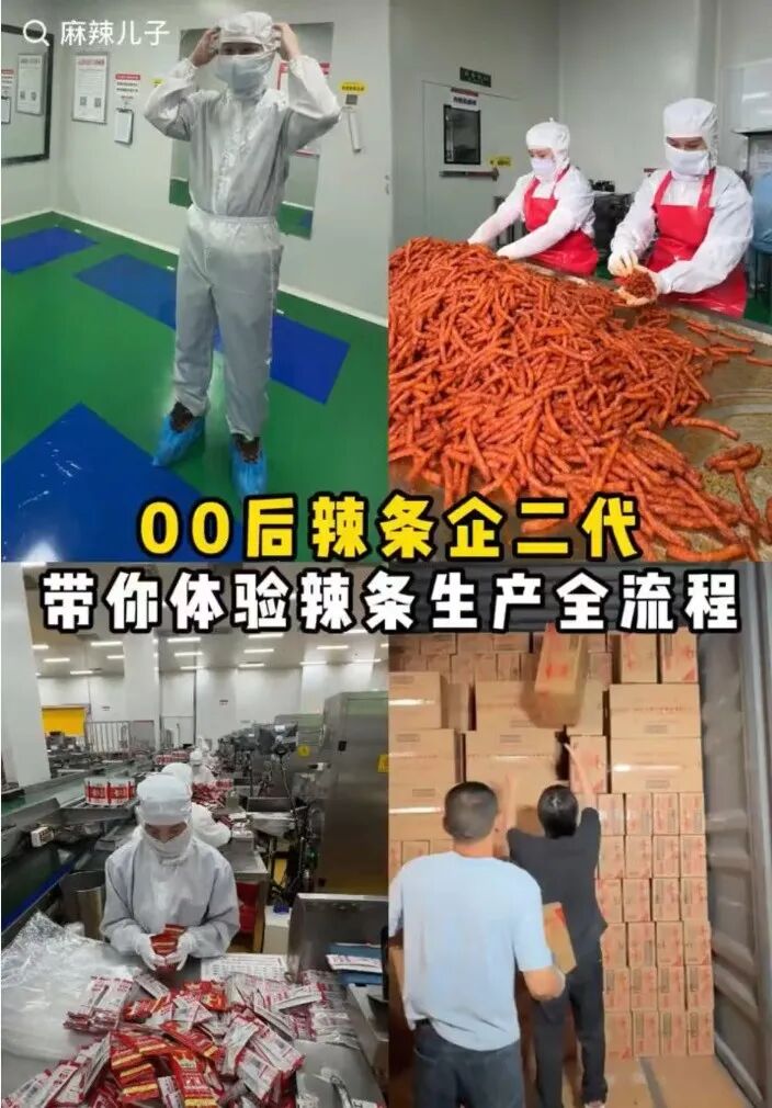 但张子龙告诉我,其实在四年前大学毕业时,他还“不知道自己要干什么”,和很多年轻人一样迷茫。虽然他生于湖南平江,从小吃着辣条长大,但过去他对这个产业并不了解,也缺乏情感认同。他没想过到家里的企业上班,误以为这是一门负债累累、难做的生意。童年时期,父亲曾问他要不要来家里的辣条厂工作,他心里很抵触,把头一扭,“我才不去呢”。那时,辣条总和“脏乱差”“地摊货”联系在一起,是家长们最痛恨的“垃圾食品”。同学问他父母是做什么的,他支支吾吾不好意思开口,只说是做零食的。