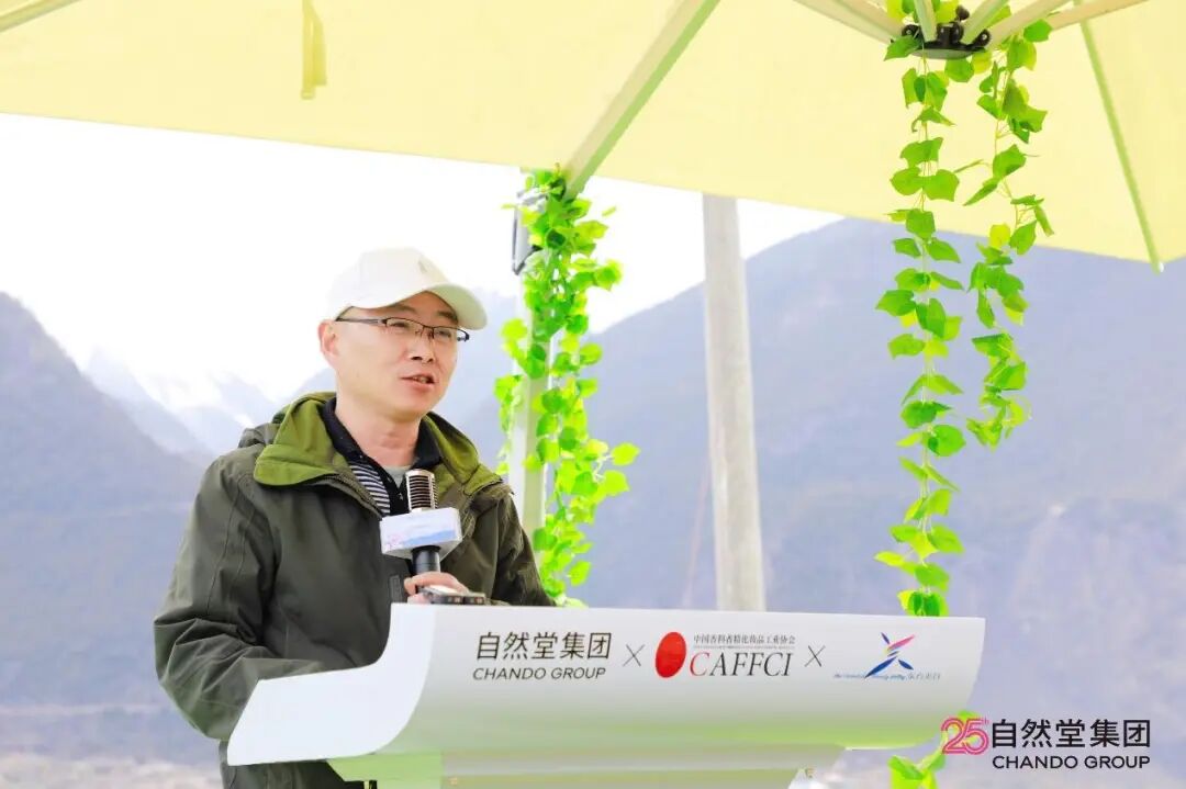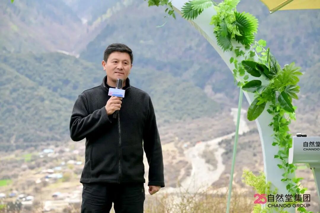 西藏林芝市波密县委副书记、县长旦增维色在致辞中向与会嘉宾介绍,波密县历史文化底蕴深厚,拥有独特区位与秀美风光,近年来深入践行“绿水青山就是金山银山”理念,坚持将科技赋能作为高质量发展的重要支撑。未来,希望继续深化与自然堂集团及各科研机构在高原特色植物资源研究、生态保护与可持续开发等领域合作,并向自然堂集团对玉沙村古桃树生态保护、助力乡村振兴和文旅产业的支持表示感谢。