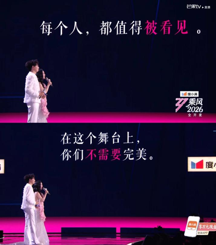 到了《乘风2026》,节目组抓住了当代女性的另一个核心困境:“有多少完美的她,代替真实的她,出席这个世界。”社交媒体时代,很多女性被“完美人设”所裹挟的焦虑,节目要强调的是,女性的力量不在于将自己打磨得毫无破绽,而在于接纳不完美的真实,从他人目光的审判中夺回了定义自己的权力。