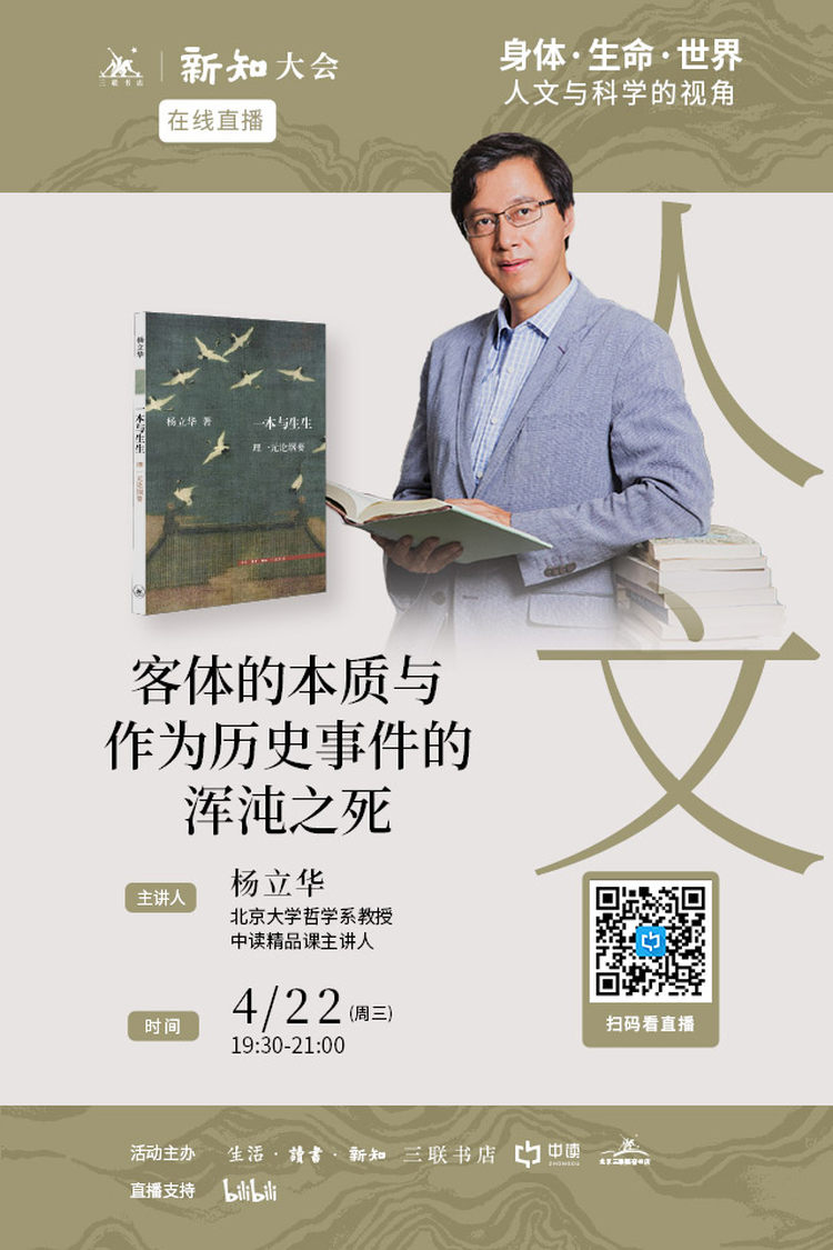 4月22日晚,北京大学哲学系杨立华教授将做客三联,以他最纯粹的哲学思考,直面当下的思维困境,为我们讲述庄子——作为“历史事件”的“浑沌之死”,或许能为我们点燃穿透历史迷雾的智慧光芒。