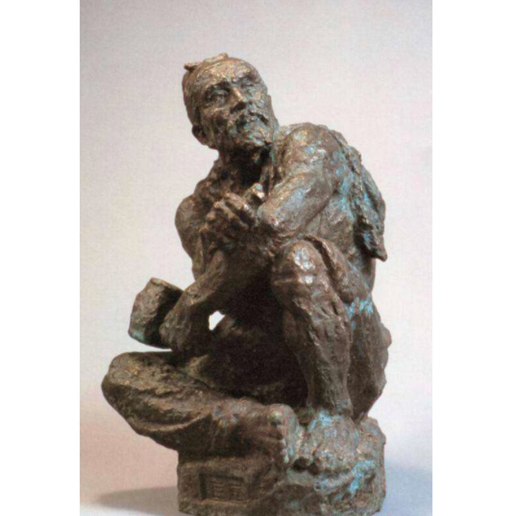 离开敦煌之后,我创作的第一件作品是《巨匠》,在雕像的背面我刻了一行字:向优秀文化的创造者致敬。我同时写了一首诗,诗文是这样的:看永恒巨作,念无名巨匠,内心无声的召唤,歌颂人民,歌颂古代优秀文化艺术的创造者,歌颂远在意大利文艺复兴之前,中国历代千百万无名的艺术巨匠。他默默无闻,画史无名,祖祖辈辈,年年月月,在高耸的断崖上,在阴暗的洞窟里,从窟顶到崖底,一锤一錾,精心地雕凿着宗教艺术的巨像。他仰起头,微眯着昏花的双眼,琢磨着、构思着,巨大的造像屹立在他的面前,心血凝聚的艺术结晶,无比的珍爱,寄托着造像人美好的希望。他拿锤捏钻的大手,即使在歇息时也不曾离开劳动的工具,坐下来,缓一缓筋骨,解一解乏,随机打开了思维的窗户,永无休止的脑力劳动,伴着肉体的消耗,倾注在艺术造像之中,巨像千古长存不朽,巨匠子孙铭记永生。