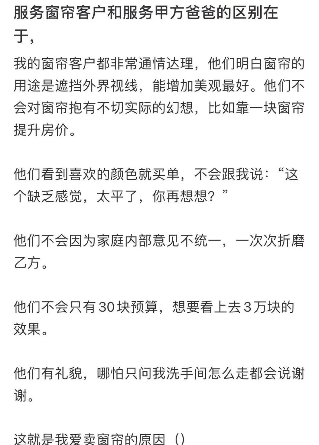 有一回,一对老夫妇跟Sammy聊得特别开心,在她这里一下子定下了全屋的8副窗帘。“虽然卖多卖少时薪都一样,但是太开心了。你温柔一点,客人还会不停地夸你。”