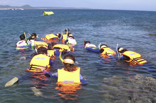 对于初学者第一次体验时,可以让他穿救生衣,而对呼吸管运用自如后,不但不需要救生衣,也能潜入数公尺深的海底,追追鱼儿,看看小生物。
