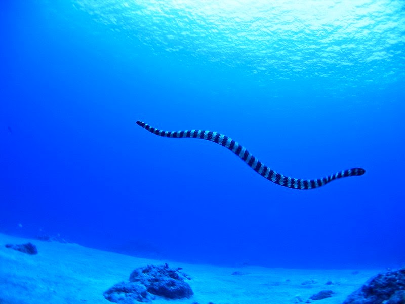 有人会问,最毒的不是海蛇吗?是没错啦。但是遇到的机会并不多,牠们在兰屿那一带比较多,而且反应颇为迟钝。以前听朋友说,抓住牠的尾巴到牠回头过来咬你,就需要二十多秒的时间,是真是假?我并不清楚,但最好别试,因为牠的毒性绝对会让我们回归大自然。
