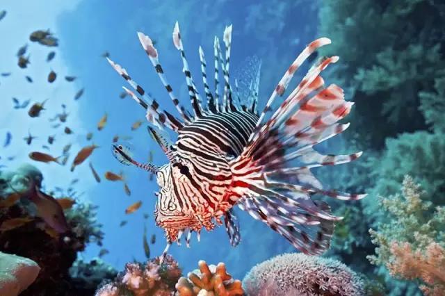 还有常见的狮子鱼也是很毒的,别看牠穿着飘飘衣裳,游得慢吞吞,被牠的鳍刺到会立刻肿胀,久了会麻木,全身抽蓄。如果被刺到一定要立即送医,由于牠的毒是蛋白质构成的,将伤口泡在约45度高温的水中,也能破坏它的毒性。