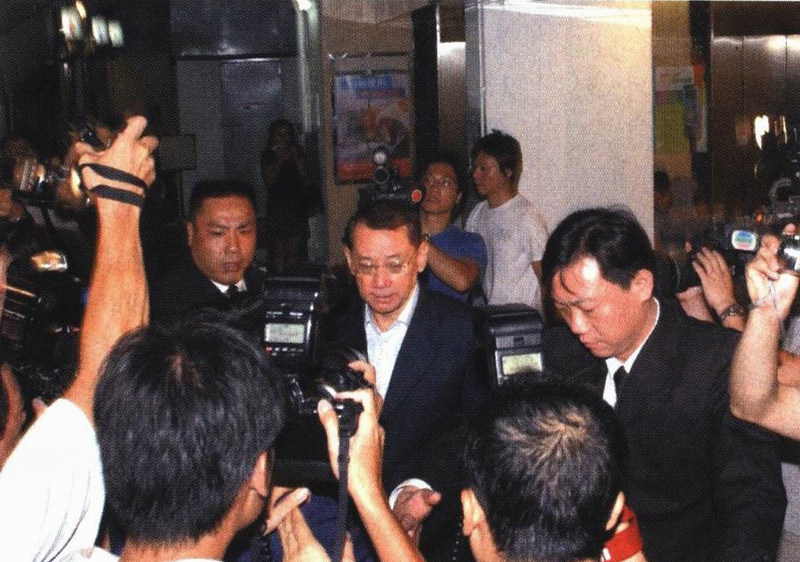 2003年7月18日,杨受成在保镖的护送下离开廉政公署