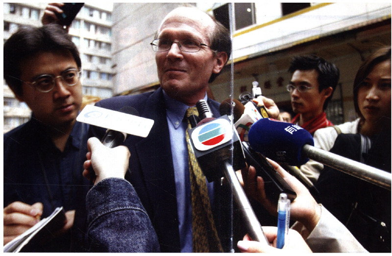 2003年4月5日,世界卫生组织专家詹姆斯博士在广州接受媒体采访