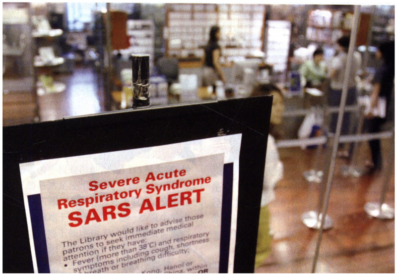 在新加坡一些公共场所出现这样的警示牌,告诉人们应该如何预防SARS,并提供相关的咨询