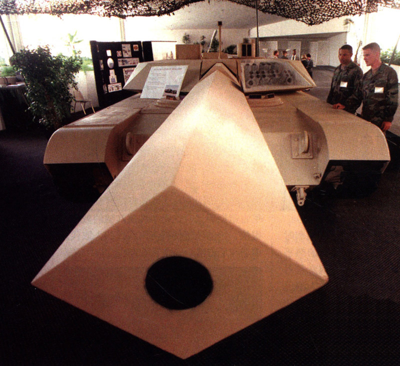 美国陆军士兵在洛杉矶测试未来战斗系统战车的模型。这种战车使用了某种散热技术,可以避免战车被敌军监测到。使用了最新电子战技术的新一代坦克将在2015年底装备美国陆军