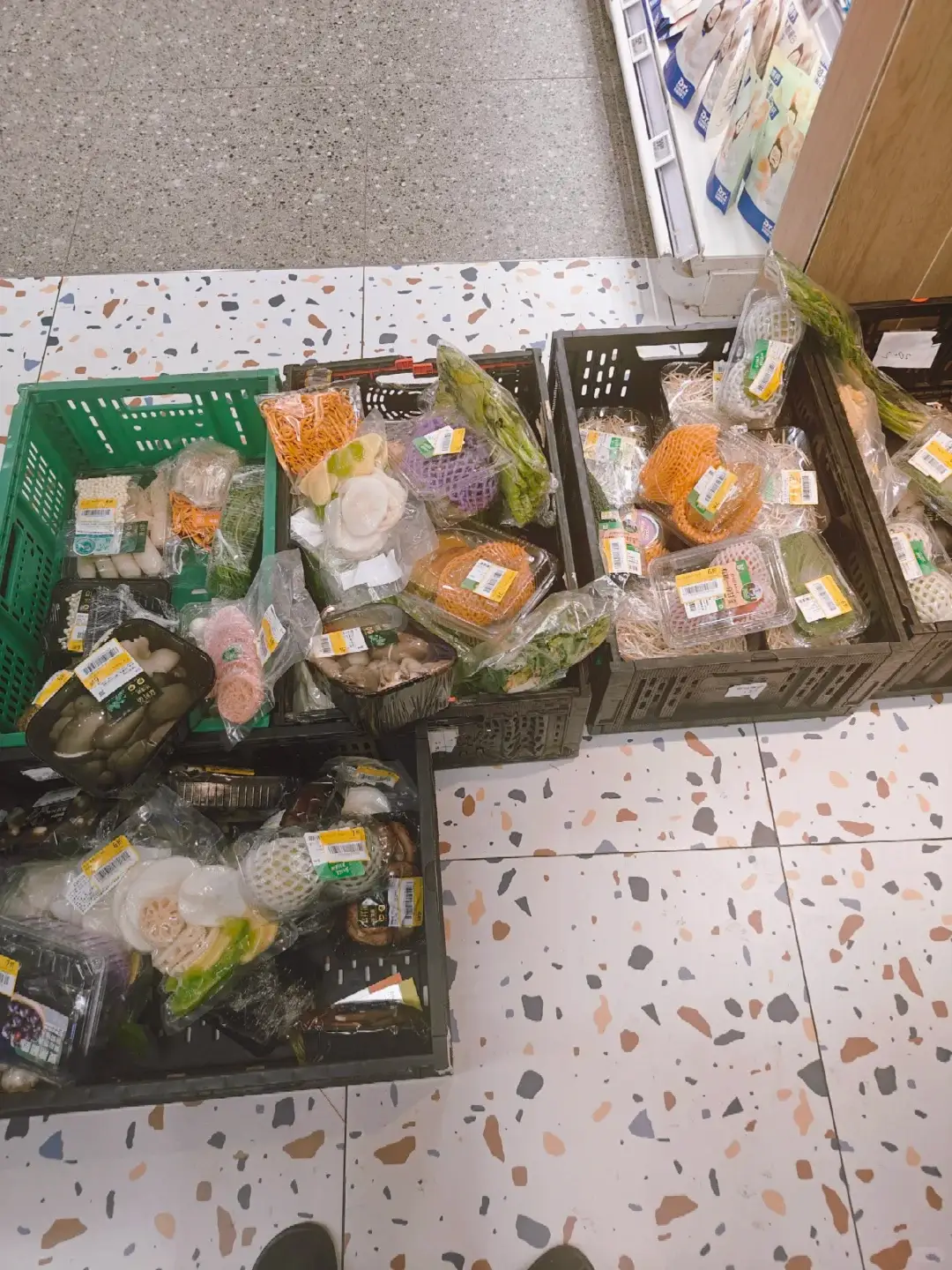 最初级的策略还是“与时间做朋友”,时间越晚折扣越高——这依旧是年轻人用生活经验就能推导出的规律,尤其是临近10点关门的盒马,“100块钱能买一车筐东西”的实惠力度,在物价不断飞涨的当下甚至让人生发出了一种错觉,但五感接收到的信息又把人拉回了现实,“感觉盒马的每个店员都在‘嚎叫’,五折、六折、买一送一,你凑过去他们恨不得直接用机器帮你扫脸支付”,如果你转了一圈再回到刚才路过的摊位,买一送一的果切也可以被店员“弹性调价”为买一送二。
