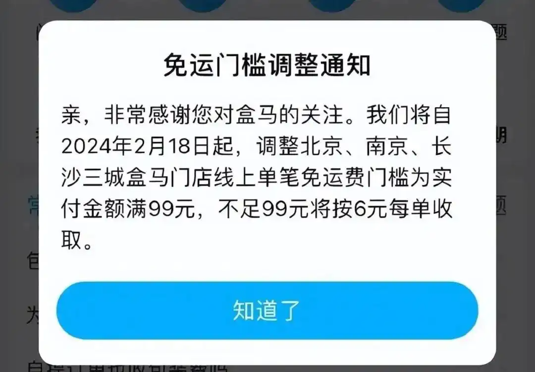 然而,仅仅在半年后,网络上便传出了阿里要将盒马出售给中粮的消息,盒马在“移山价”获得成功后,折扣化改革更是带来了会员福利的大幅缩水,这也让盒马老用户多了不少怨言——258的会员费一分没少,但是免费配送的次数却在变少,会员日的打折商品也悄悄加上了“指定商品”的限制,“不仅没有山姆方便了,连配送都比人家慢了”。