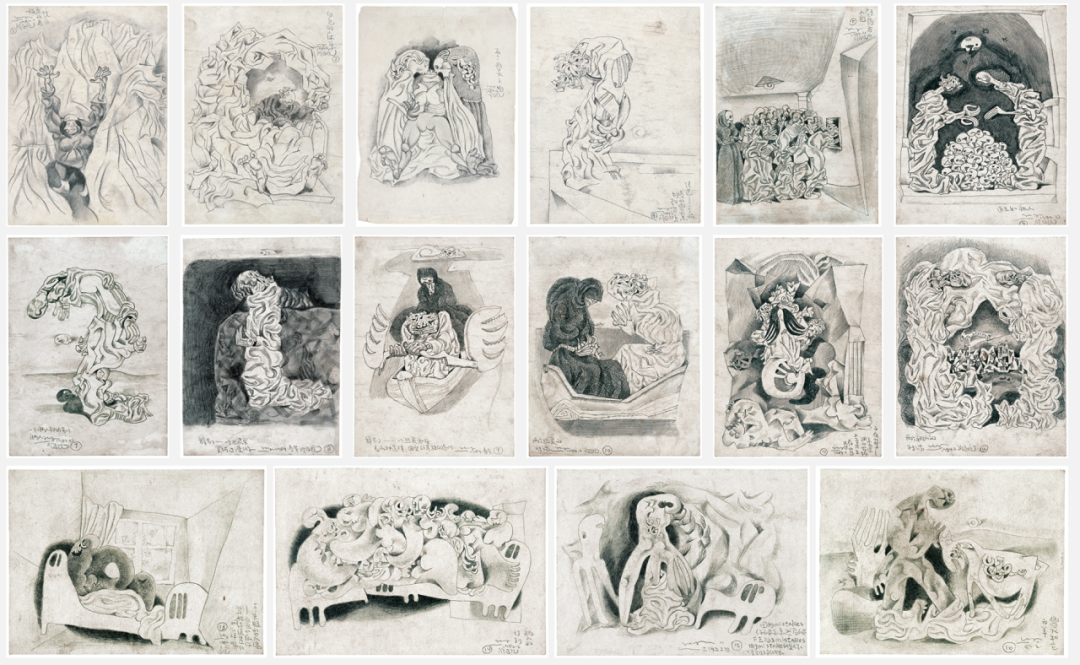 与此同时,他的主题开始延展为更广泛的存在问题。“病的梦魇”系列正是这种延伸的表现。自上世纪八十年代以来,“病”一直是他作品中的暗线:病是生命的临界经验,也是艺术家与世界保持距离的方式。他说:“健康的人只能看到世界的表面,病人能看到它的褶皱。”在“病的梦魇”中,身体、时间与记忆交织为一种内在戏剧,画面中的身体被抽象化,成为存在的符号。崔灿灿将这一线索视为他作品的“伦理底座”——忧郁、孤独与死亡在这里不再是主题,而是感知世界的方式。