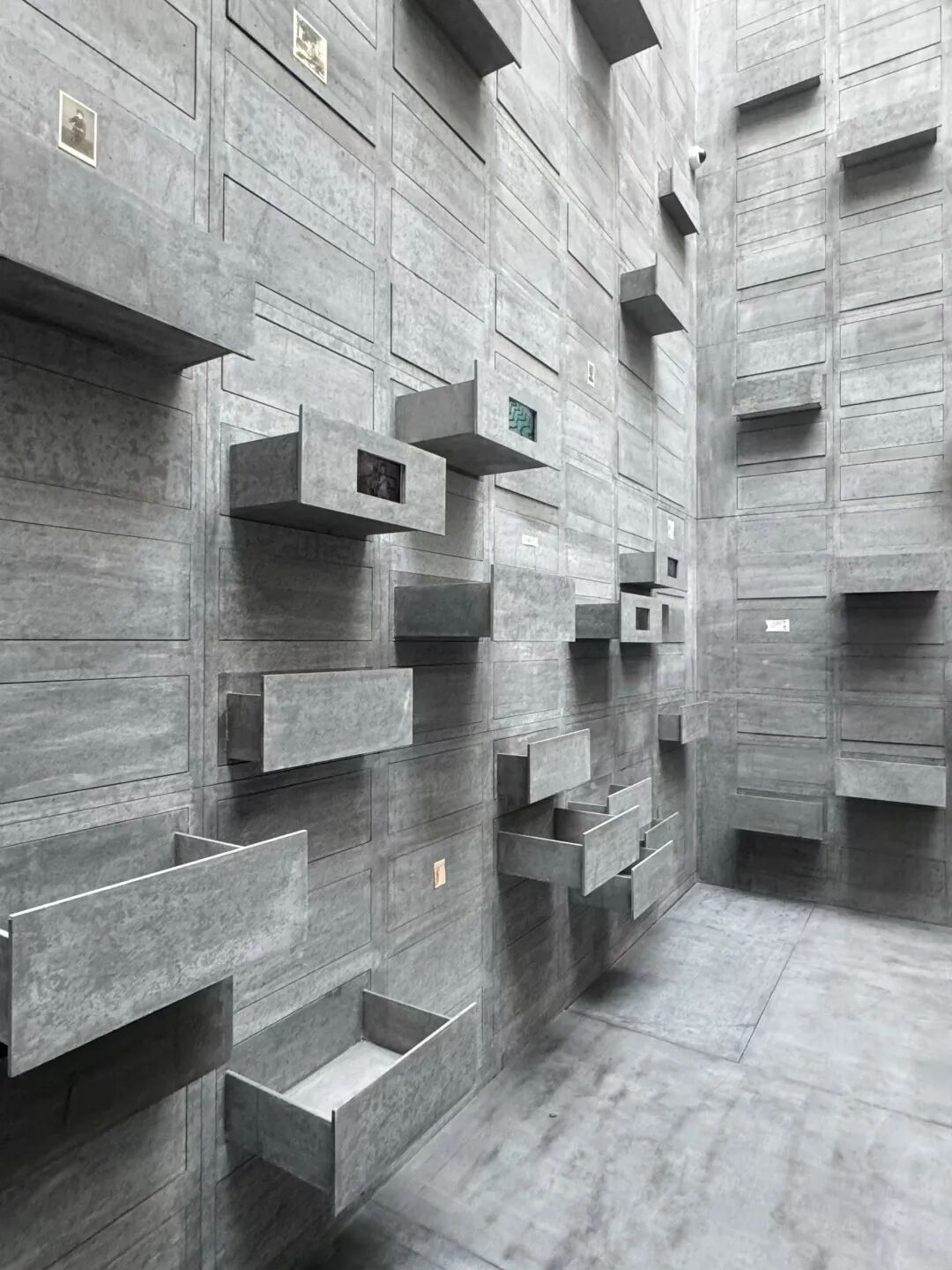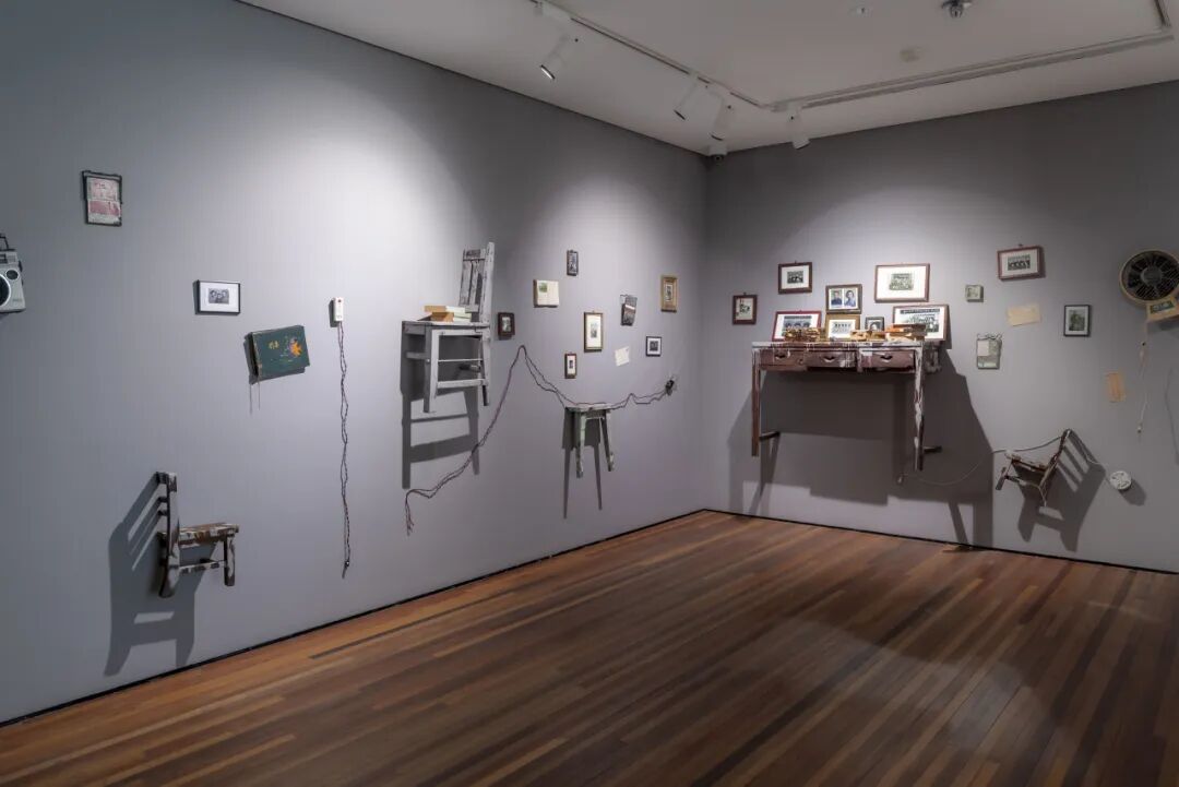 展览入口的瓷砖墙体故意模拟旧生活的质感,像六七十年代南方家庭客厅,那种误入感正是展览的起点,与艺术家一同与母亲同坐,“回到不存在的过去”。《安全屋1号》(2017) 延伸出的灰色空间构成,黑色的成排抽屉塞满“文献作品”,艺术家希望“把档案视觉化”,让文献成为图像经验。每一个抽屉,都像是一次记忆的试探:泛黄的信件、报纸、笔记静止不动,却在心理上持续延展。
