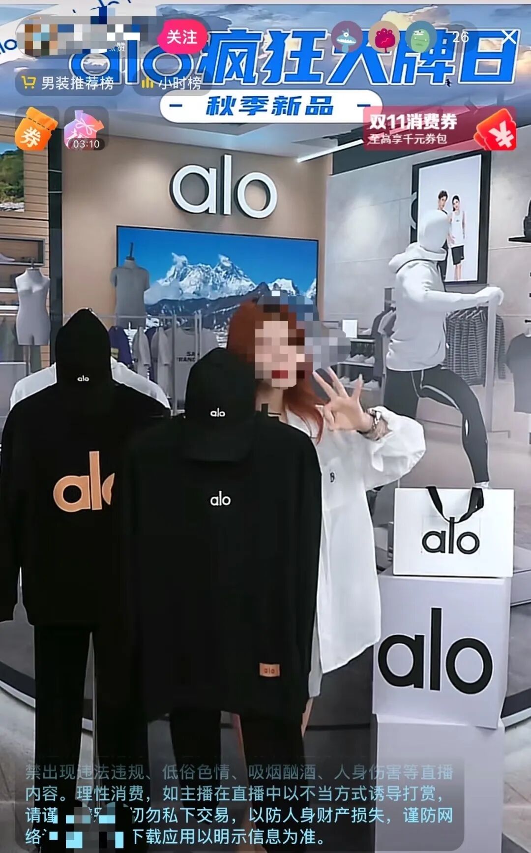 之所以会这样,是因为山寨者对该品牌的核心策略是“闪电战”。在正品品牌尚未开通官方渠道时,山寨方已抢先注册并运营起“ALO旗舰店”,甚至一度跻身天猫双11新商成交榜前十。