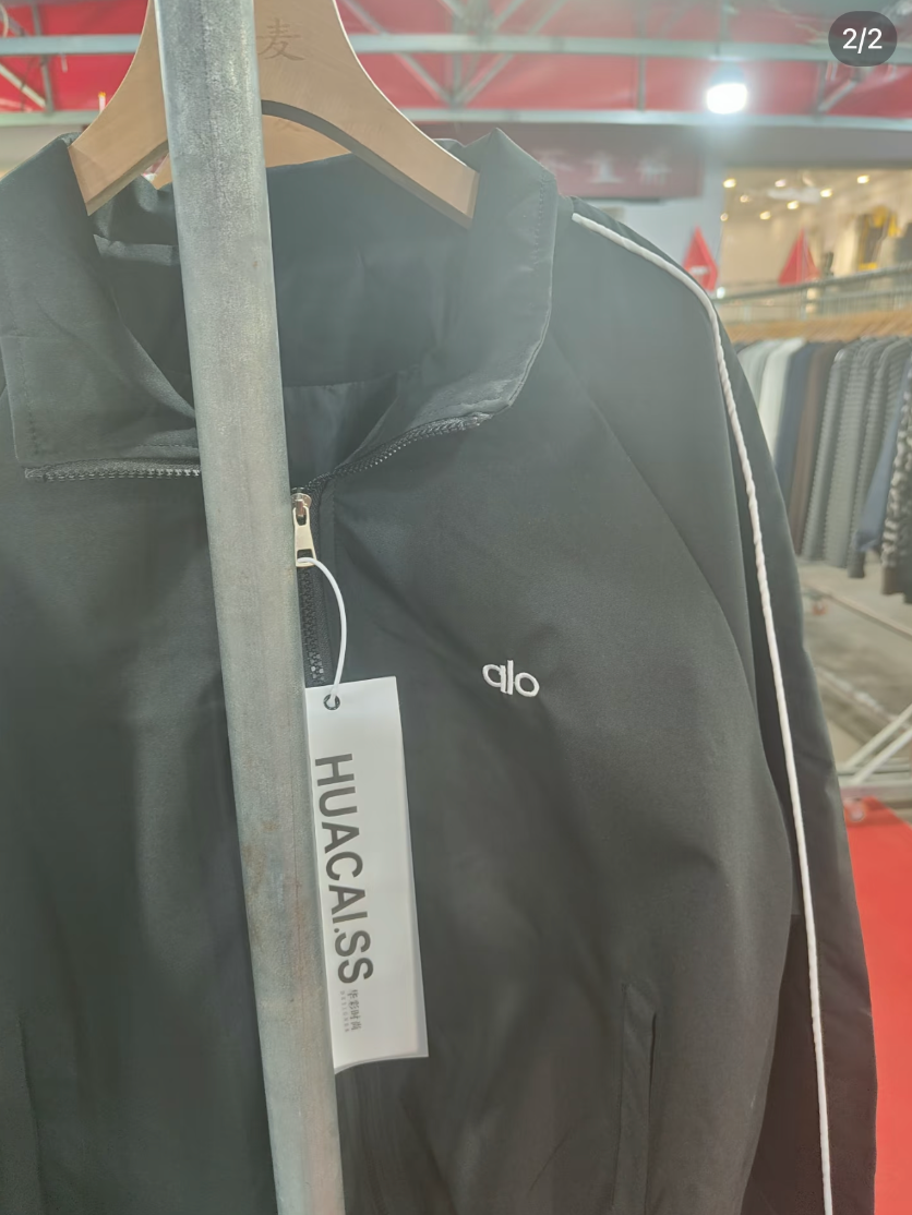 产品线上,正品官网从未有过的冲锋衣、加绒卫衣,在山寨店铺里层出不穷。并且渠道与定价呈现出了一种分裂:线上席卷所有电商与直播间,线下则渗透至县城街头;价格跨度从10元一件的走量奶茶价卫衣,到400-500元对标正品半价的中产特供瑜伽裤。