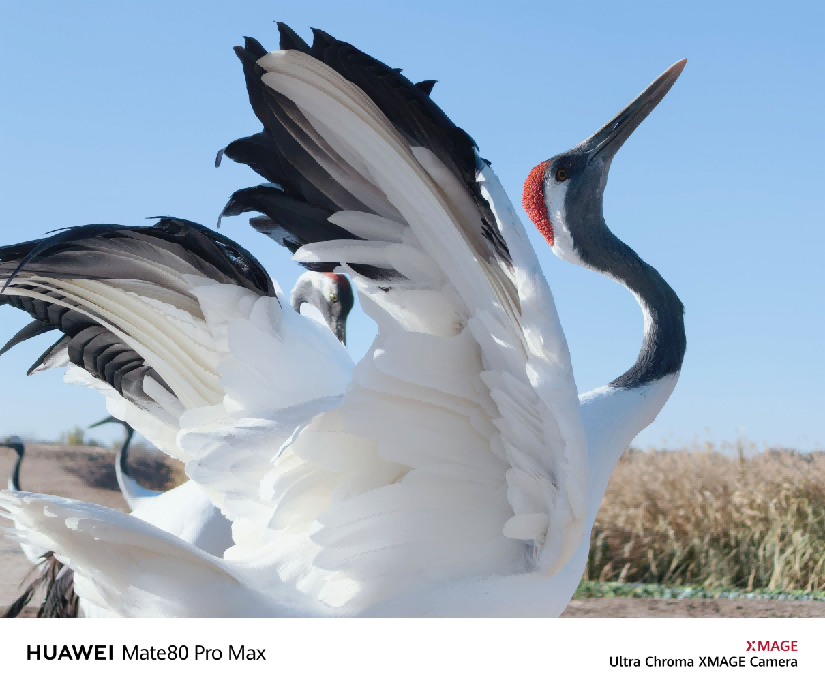 这张远景照片中,一只丹顶鹤栖息在远处滩涂,实际距离超过几十米,但在10倍变焦下,它的细节依然清晰——头顶标志性的“丹红”色泽鲜明而准确,没有偏橘或发暗;黑白羽毛的过渡细腻自然,毫无断层;就连喙部的纹理乃至翅膀上每一片飞羽的轮廓,都纤毫毕现,不得不说光学变焦的无损放大确实很有看点(华为Mate 80 Pro Max搭载的5000万像素潜望式双长焦镜头:在4倍和6.2倍两个焦段均可实现原生光学变焦)。