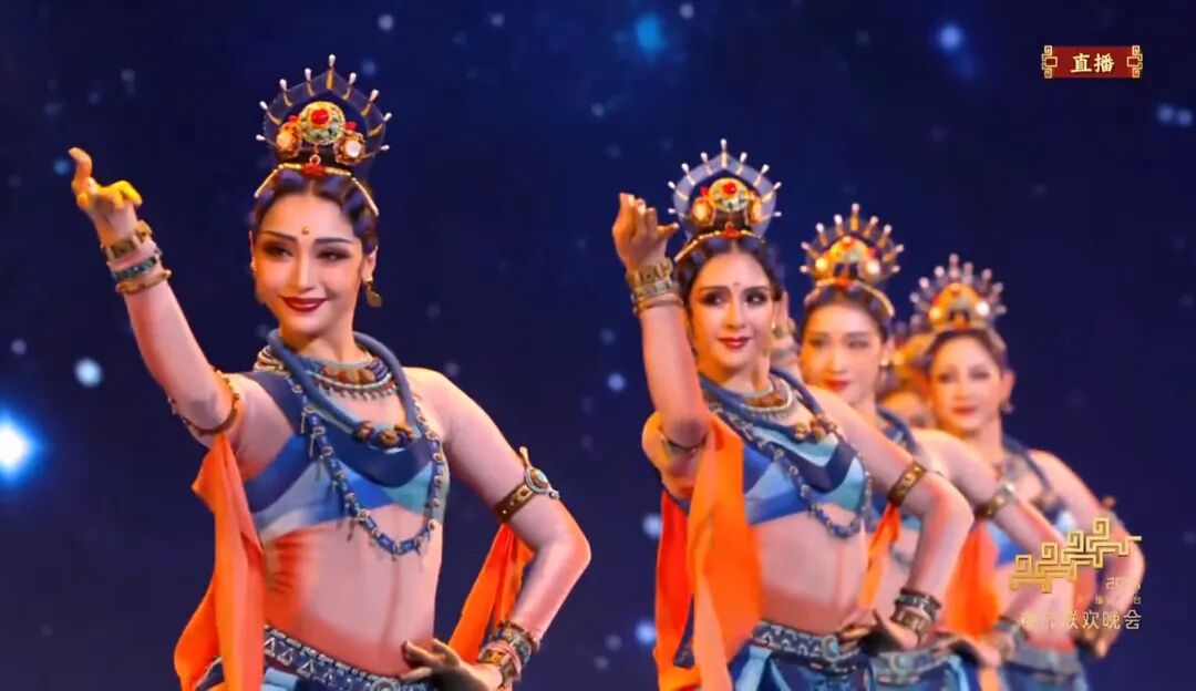 舞蹈《丝路古韵》将龟兹壁画“搬”上舞台,舞者复刻飞天舞,通过旋转、长袖等动作还原丝路古韵,飘带飞扬间,仿佛千年壁画成真。大家纷纷感叹:对眼睛很好!