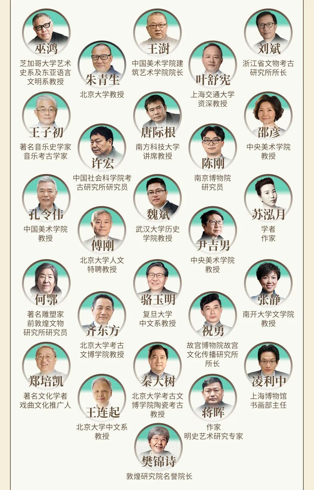他们中有来自北京大学、芝加哥大学、中国社会科学院、中央美术学院等国内外顶尖学府的教授。还有故宫博物院、敦煌研究院等研究领域的知名学者。