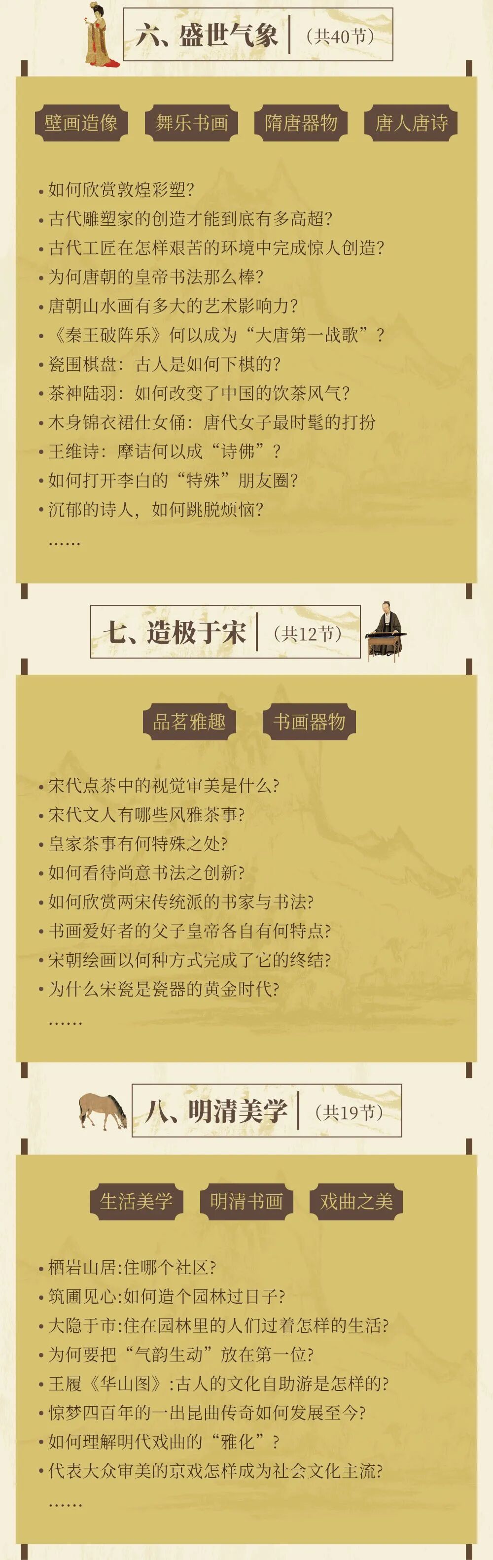 我们将历年的口碑美学课程集结起来,并选取其中的精华,经过精心梳理和策划,重装推出了《给国人的美学课——从上古到明清,160回传统寻美之旅》。