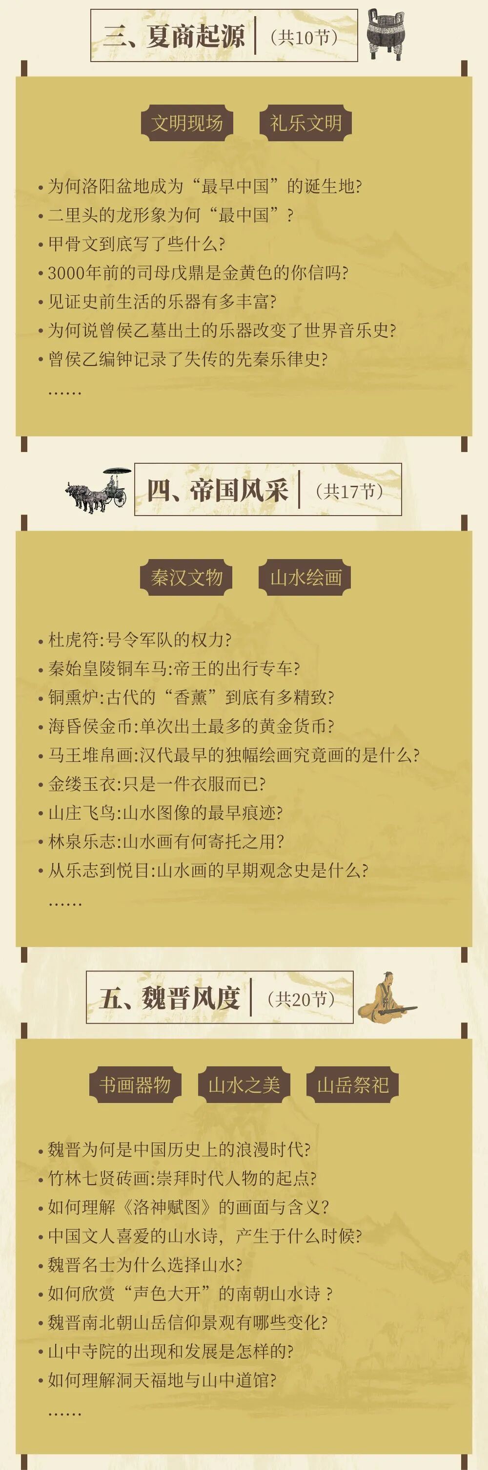 那些让你向往的朝代、难得一见的国家宝藏、平常无从深入的领域,这门课都会带你一一赏遍。