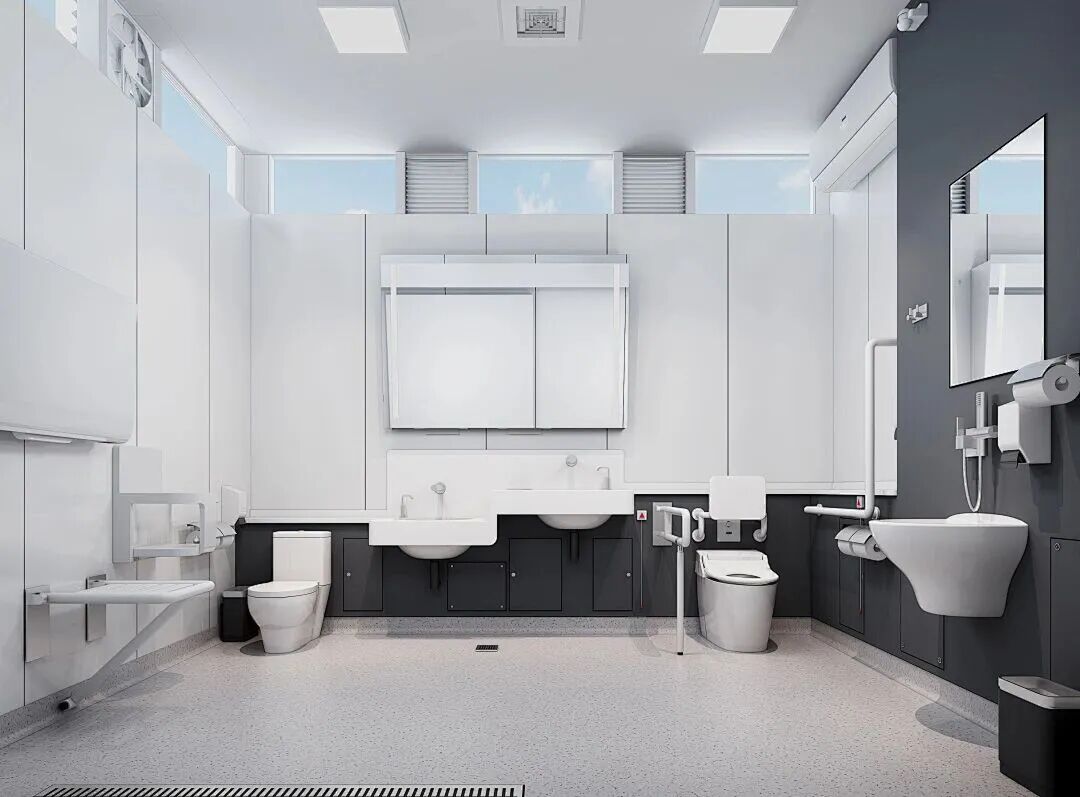 除了空间与设施之外,技术系统也是现代公共厕所的重要组成部分。例如新风系统。传统公共厕所通常依赖简单排风扇通风,但这种方式很难彻底消除气味。近年来,一些大型公共建筑开始采用低位排风系统,将空气从隔间底部抽走,再通过顶部送风形成循环,从而减少气味扩散;同时,节水型洁具和感应式设备的使用也可以减少水资源浪费和公共卫生间运营成本。
