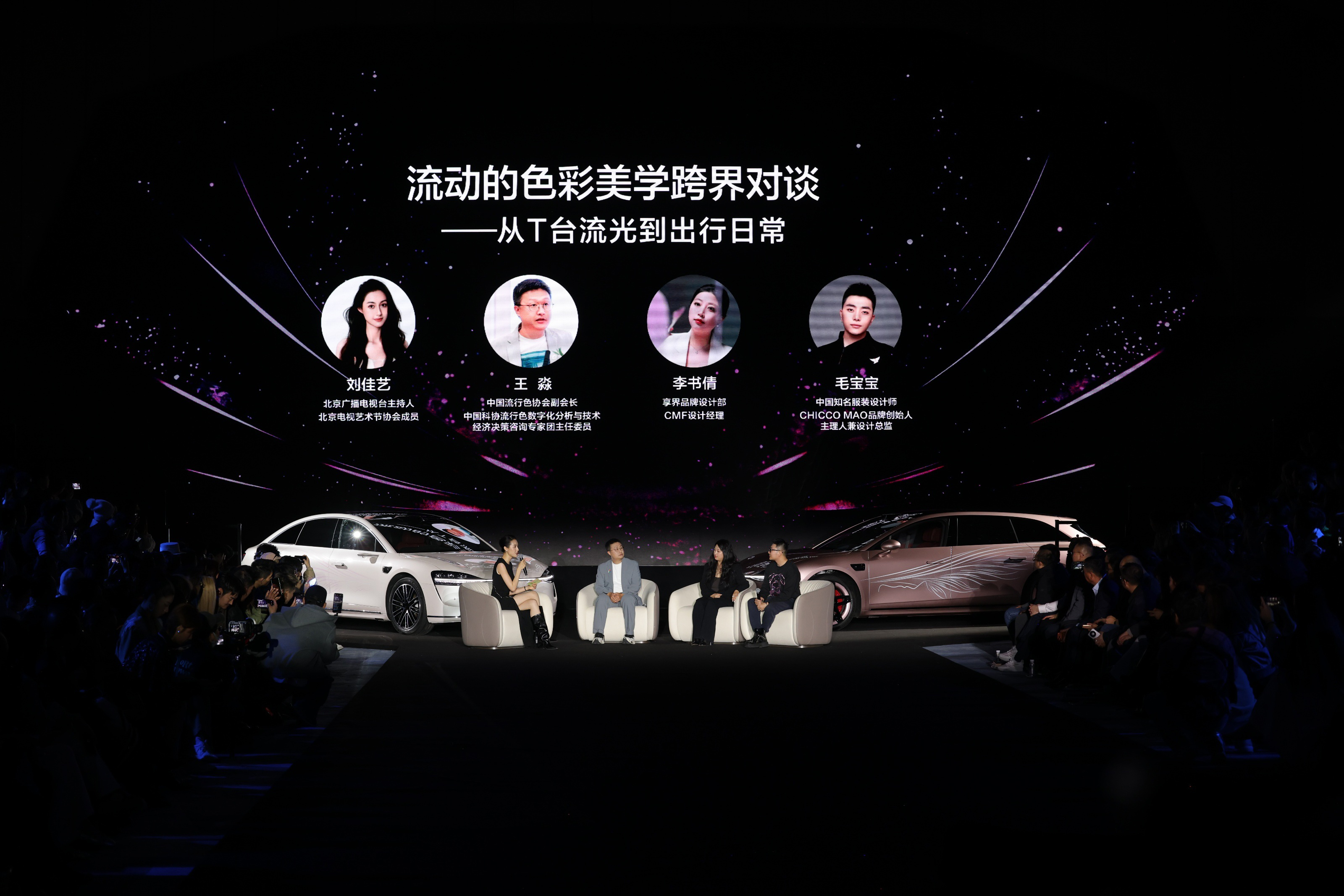 秀后,享界色彩设计师、大秀时装设计师、以及中国流行色协会副会长王淼齐聚T台,展开一场关于“寰宇美学”的深度对谈,从星玫粉的诗意与璀璨,到月绒白的摩登高级质感,共同解读色彩如何成为当代人表达自我、传递生活态度的情感载体。享界还特别设置了AI换装拍照区,让更多嘉宾与新车同框定格时尚大片,沉浸式感受寰宇美学的设计魅力。