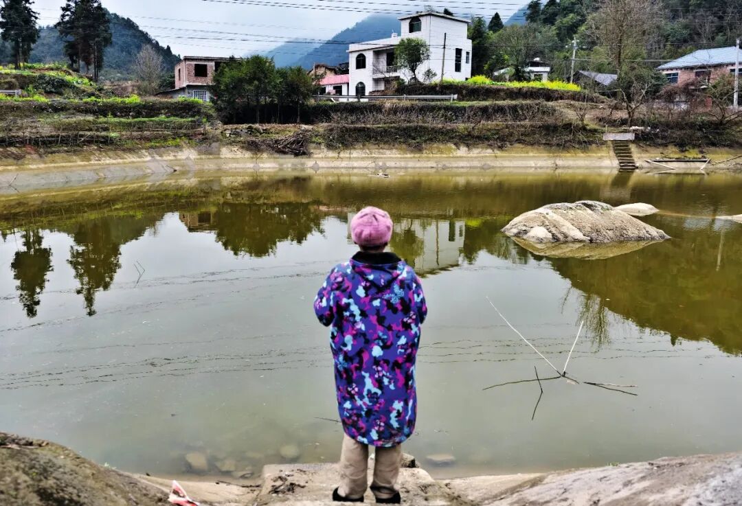 3月2日,李海玉来到老宅旁的池塘,弟弟小时候曾在此学游泳(孤鸿 摄)