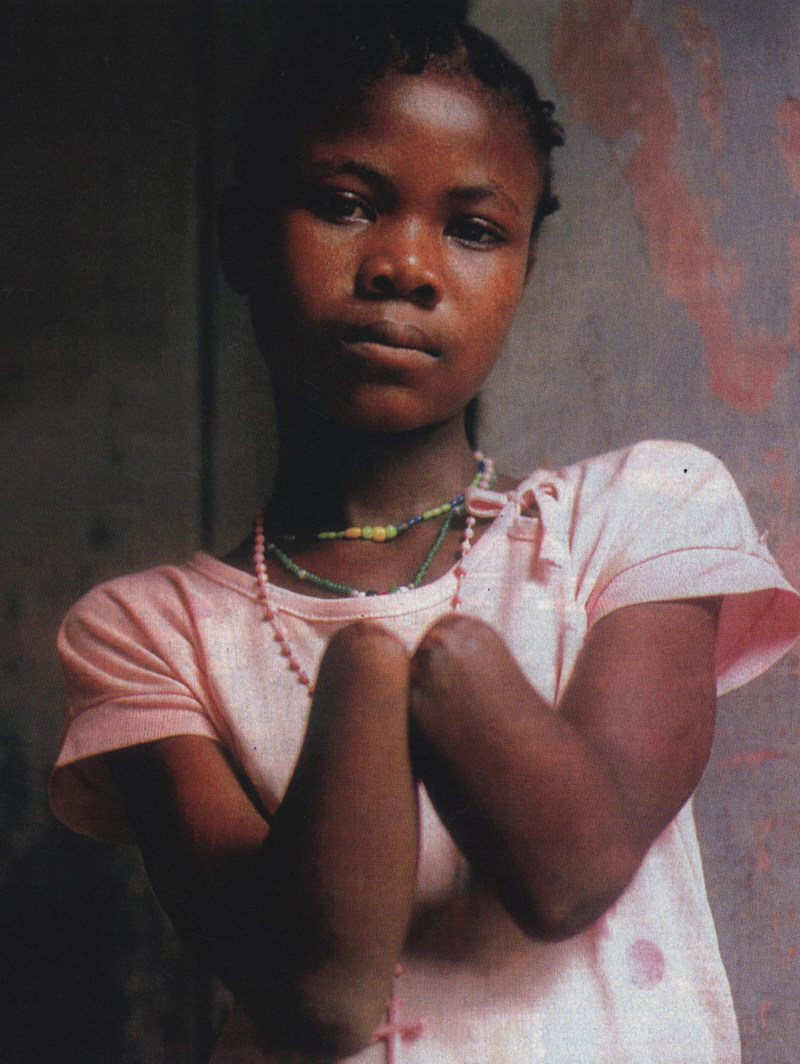 在塞拉利昂种族冲突中被砍去双手的13岁女孩