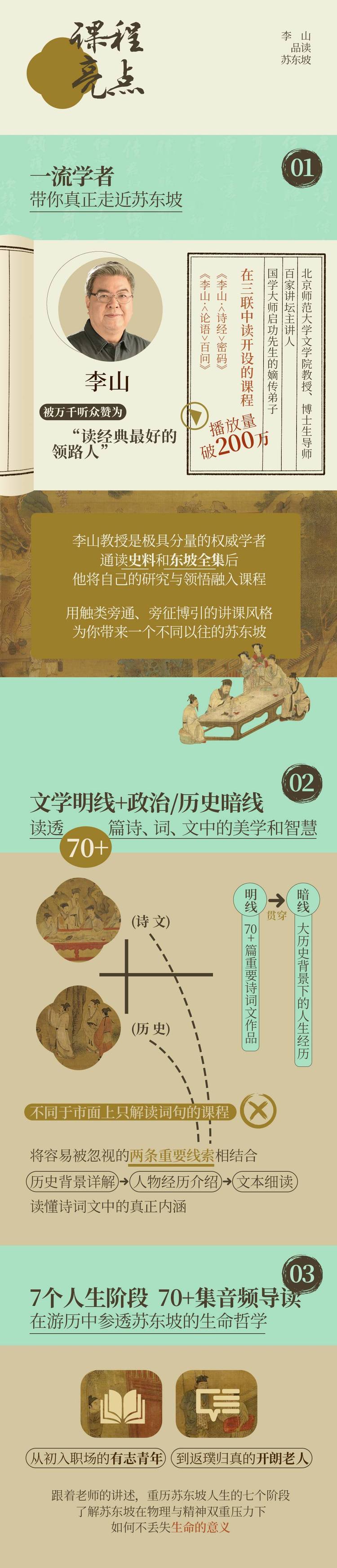 2.《李山·品读苏东坡》为音频专栏,约80课时,首发5节,每周更新1-2节。